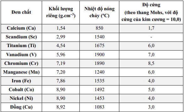 Các electron hóa trị của nguyên tử nguyên tố kim loại chuyển tiếp dãy thứ nhất phân bố ở phân lớp 4s và 3d
