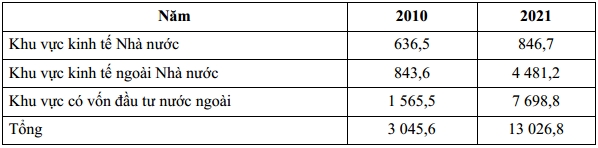 Giá trị sản xuất công nghiệp phân theo thành phần kinh tế ở nước ta năm 2010 và 2021