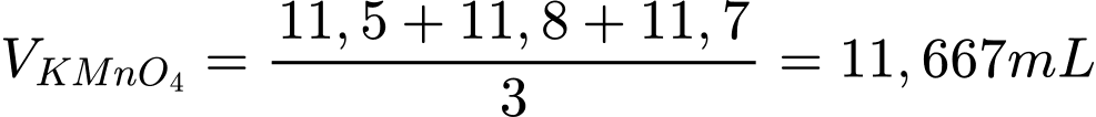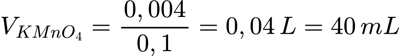 => Thể tích dung dịch KMnO4 dùng để chuẩn độ là