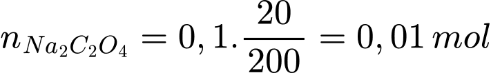 - Số mol của Na2C2O4 trong 20 mL dung dịch A là: