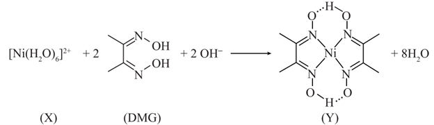 Phức chất của Ni²⁺ với dimethylglyoxime (DMG) được sử dụng rộng rãi trong phân tích định tính và định lượng để nhận biết ion Ni2+. Phức chất này có màu đỏ tươi, không tan trong nước, có dạng cấu trúc vuông phẳng, được tạo thành theo phản ứng: