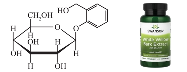 Salicin là một loại thuốc giảm đau, chống viêm được sản xuất từ vỏ cây liễu, có công thức cấu tạo như dưới đây: