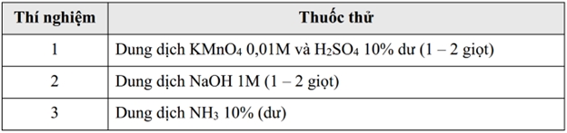 Quy trình tiến hành chuẩn độ: Dùng pipette lấy 10,0 mL dung dịch H2C2O4 0,1 M cho vào bình tam giác, thêm khoảng 10,0 mL dung dịch H2SO4 2M, đun nóng trên bếp điện đến 70 – 80°C (không đun sôi). Cho đầy dung dịch KMnO4 cần xác định nồng độ (được pha sẵn) vào burete và điều chỉnh đến vạch số 0. Nhỏ từng giọt dung dịch KMnO4 cần xác định ở trên vào bình tam giác đựng dung dịch H2C2O4 đã acid hóa, lắc đều dung dịch tới khi có màu hồng nhạt bền khoảng 20 giây. Đọc và ghi lại thể tích KMnO4 trên burette như sau: