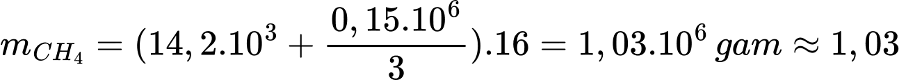 +) Khối lượng khí methane ở phản ứng (1) và (2) là: