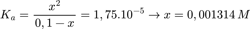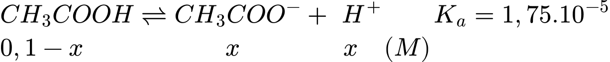Gọi x là nồng độ H+ phân li của CH3COOH 0,1M