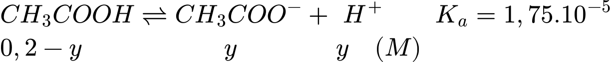 Gọi y là nồng độ H+ phân li của CH3COOH 0,2M