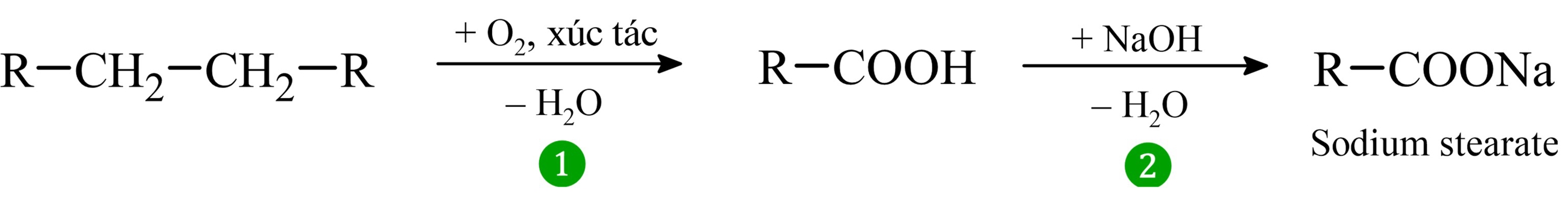 . Đây là quá trình oxi hóa hydrocarbon no mạch dài thành acid béo tương ứng.2. Phản ứng (2) - Trung hòa/Xà phòng hoá:
