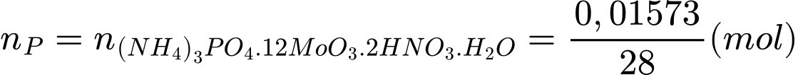 Bước 1: Phân tích 2,684 gam mẫu phân bón và toàn bộ nguyên tố phosphorus được hìnhthành dưới dạng kết tủa (NH4)3PO4.12 MoO3.2HNO3.H2O.