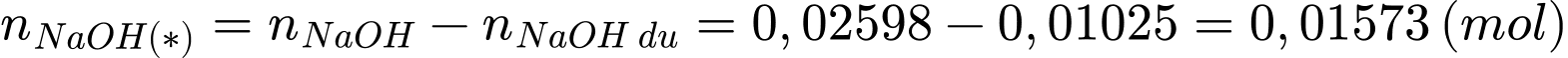 Số mol NaOH tham gia phản ứng (*) là: