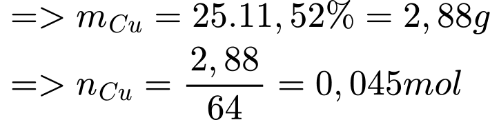 25g quặng A mà %Cu = 11,52%