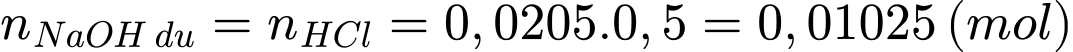 Số mol của HCl phản ứng với lượng dư NaOH là:
