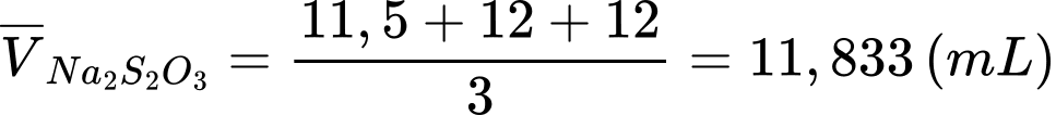 Thể tích trung bình của Na2S2O3 sau 3 lần chuẩn độ là: