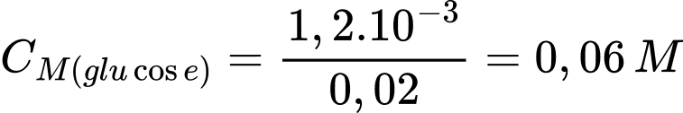 ✔️ c) Đúng. Nồng độ glucose trong mẫu dung dịch ban đầu là 0,06 M.
