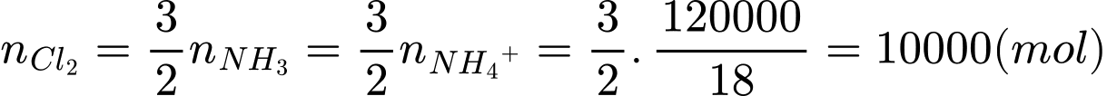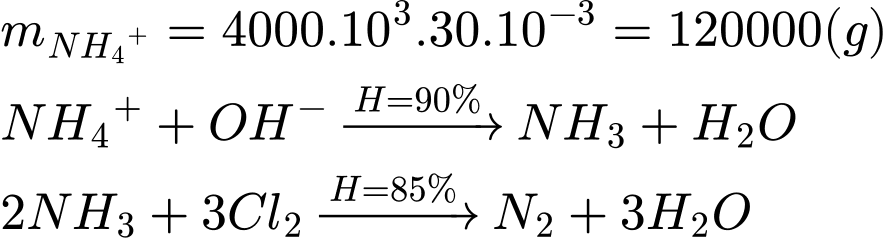 ▪ Bước 2: Sử dụng khí chlorine để oxi hóa NH3 thành N2; hiệu suất quá trình theo NH3 là 85%.