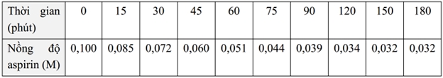 Kết quả xác định nồng độ aspirin theo thời gian được thể hiện ở bảng dưới đây: