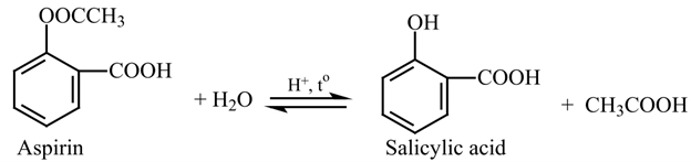 Aspirin được sử dụng làm thuốc giảm đau, hạ sốt. Sau khi uống, aspirin bị thuỷ phân trong cơ thể tạo thành salicylic acid, chất này làm ức chế quá trình tạo ra chất gây đau, sốt. Trong phòng thí nghiệm, một nhóm học sinh tiến hành nghiên cứu quá trình trình thuỷ phân asprine theo phản ứng: