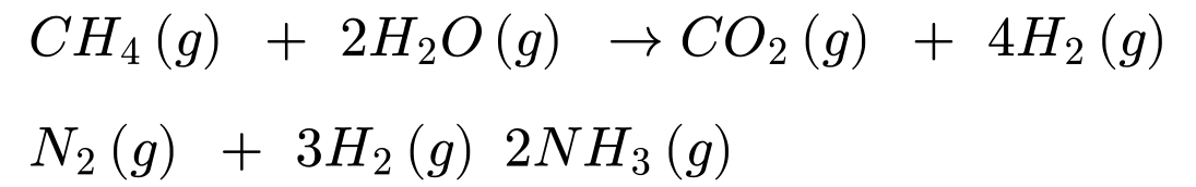 N2(g) +3H2(g) ⇌ 2NH3(g) (2)