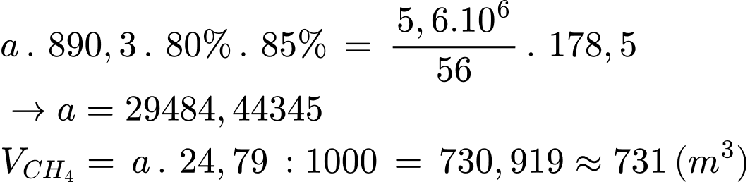 Thể tích khí H2 cần thiết VH2 = 656,8284 × 3 = 1970,7852 m3