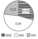 Câu 26 [1101269]: Ở người, hệ nhóm máu MN được quy định bởi 2 allele đồng trội M và N. Biểu đồ bên thể hiện tần số các kiểu gene quy định hệ nhóm máu MN của một quần thể người. Tần số allele N trong quần thể này là bao nhiêu (không làm tròn kết quả các phép tính trung gian, chỉ làm tròn kết quả cuối cùng đến hàng phần trăm)?