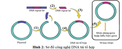 Hình dưới đây mô tả công nghệ DNA tái tổ hợp, các số (1), (2), (3), (4), (5) thể hiện các giai đoạn. Hãy cho biết người ta sử dụng enzyme cắt giới hạn (restriction endonuclease) ở giai đoạn nào?