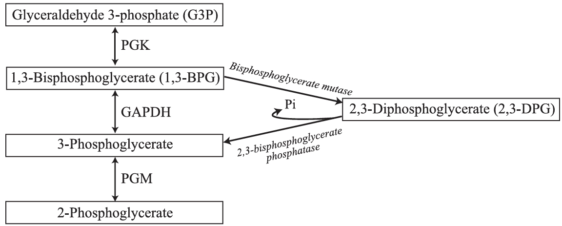 Sơ đồ trong hình bên minh họa quá trình chuyển hoá tạo 2,3-DPG trong tế bào.
