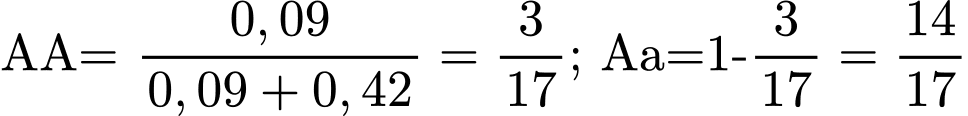Câu 26 [1099098]: Ở cà chua, cho biết allele A quy định quả đỏ, allele a quy định quả vàng (gene trội lặn hoàn toàn), cho 2 cây cà chua tứ bội có kiểu gene AAaa và Aaaa lai với nhau thu được F1, cho biết quá trình giảm phân bình thường, các giao tử có sức sống và khả năng thụ tinh như nhau. Tỉ lệ quả đỏ ở F1 là bao nhiêu? (Thể hiện kết quả bằng số thập phân, làm tròn đến 2 chữ số sau dấu phẩy).