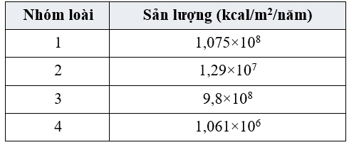 Câu 26 [1099125]: Khi khảo sát ở một hệ sinh thái, người ta xác định được sản lượng của 4 nhóm loài thuộc 4 bậc dinh dưỡng khác nhau như bảng sau: