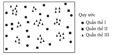 Câu 8 [1099117]: Hình vẽ bên thể hiện sự phân bố cá thể của 3 quần thể sinh vật trong một khu vực khảo sát.