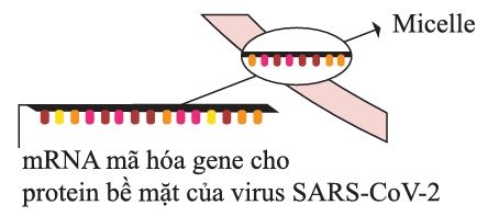 Virus SAR-CoV-2 có vật liệu di truyền là sợi RNA (+) song được tái bản bởi replicase (RdRP) là một enzyme RNA polymerase dùng RNA làm mạch khuôn. Khi tiến hành tổng hợp nhân tạo mRNA mã hoá protein bề mặt SAR-CoV-2 rồi đóng gói thành một hạt nano lipid được gọi là micelle. Cấu trúc micelle được mô tả trong hình bên dưới. Vaccine RNA này có thể được sản xuất với số lượng lớn mà không cần nuôi cấy virus.