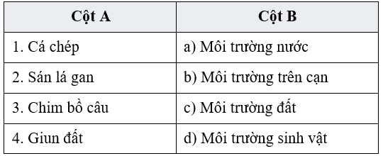 Câu 24 [1099178]: Ghép mỗi nội dung ở cột A với một nội dung ở cột B sao cho đúng nhất.