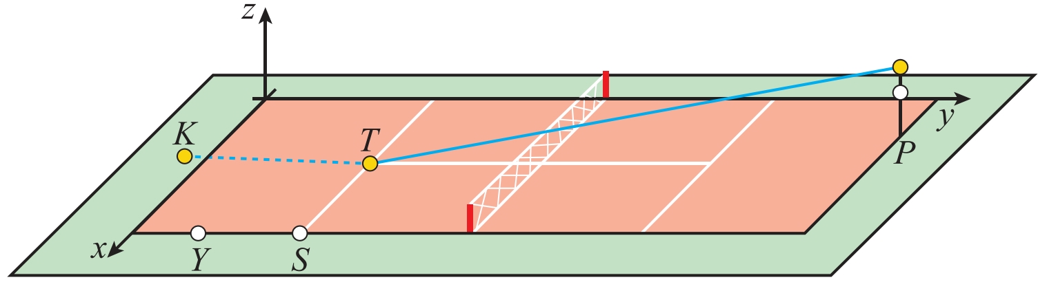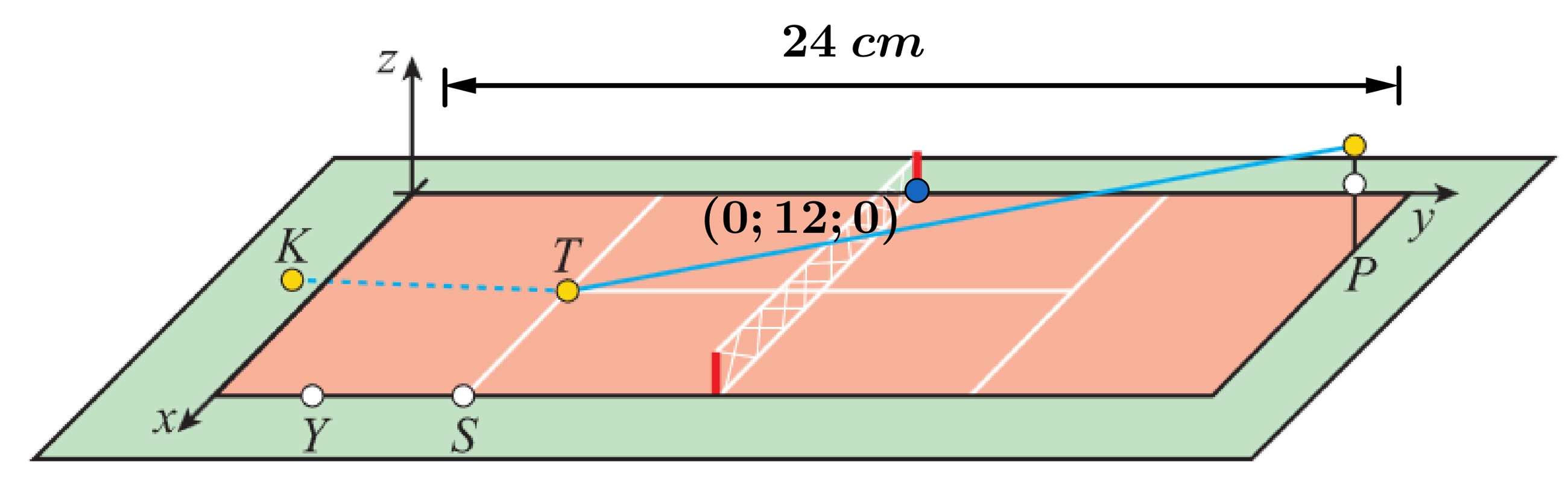 có thể di động). Trong không gian với hệ toạ độ cho trước, đơn vị mỗi trục là mét, mặt đất là mặt phẳng