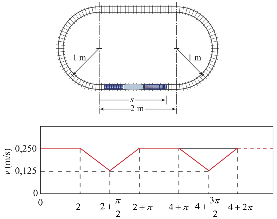 - Bộ điều khiển bướm ga điện tử của một mô hình tàu hỏa được lập trình sao cho tốc độ tàu hỏa thay đổi theo vị trí như thể hiện trong sơ đồ.