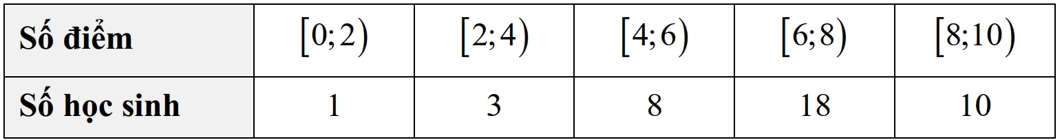 Câu 1 [547585]: Điểm kiểm tra giữa học kì I của lớp 11T được thống kê theo bảng sau: