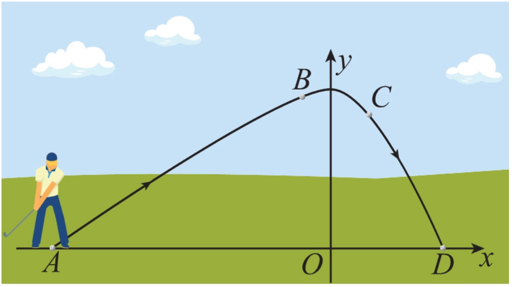 (đơn vị mỗi trục là mét), có một sân golf thu nhỏ, điểm phát bóng là điểm