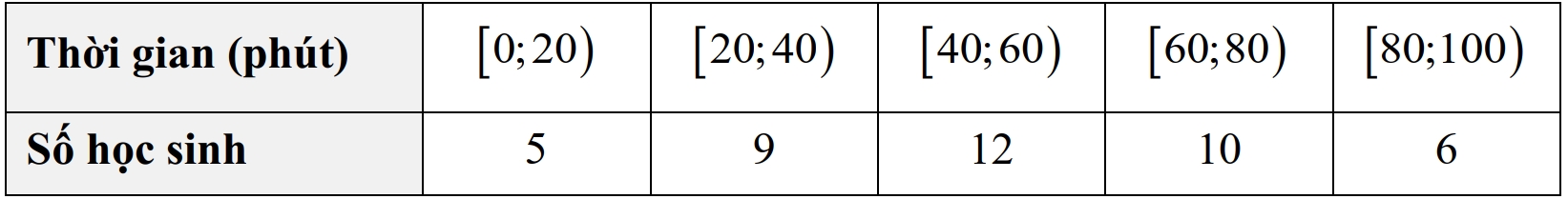 Câu 12 [547603]: Khảo sát thời gian tập thể dục trong ngày của một số học sinh khối 11 thu được mẫu số liệu ghép nhóm sau: