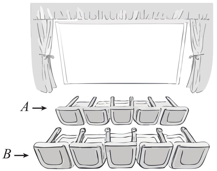 Câu 21 [1103217]: Một gia đình 5 người gồm Ông, Bà, Bố, Mẹ, và Bé đi xem phim. Ghế ngồi trong rạp phim được bố trí thành hai hàng