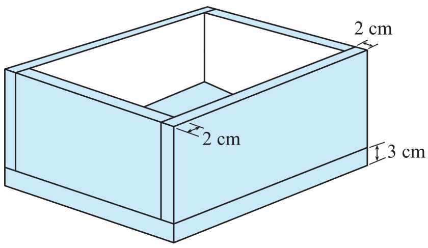 (kết quả làm tròn đến hàng phần mười). Giả định rằng các tấm gỗ được cắt và ghép kín góc tức là các mặt ngoài của thùng cũng tạo thành hình hộp chữ nhật.