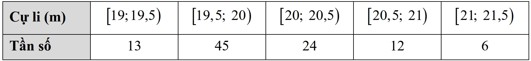 Câu 12 [694719]: Bảng dưới đây thống kê cự li ném tạ của một vận động viên.
