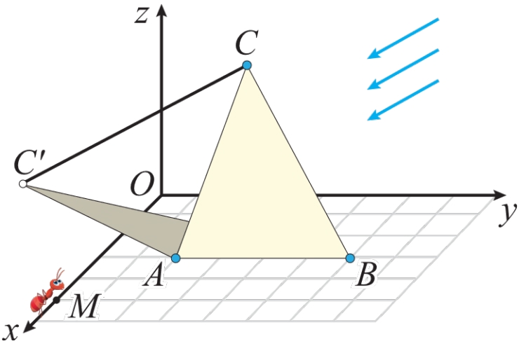 tạo thành một cái bóng mát trên mặt đất (quan sát hình vẽ). Một con kiến bò từ điểm