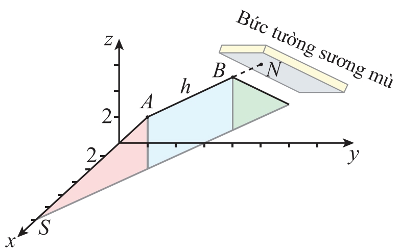 cơ trưởng khinh khí cầu phát hiện một bức tường sương mù được mô hình hoá bởi mặt phẳng