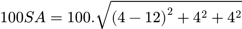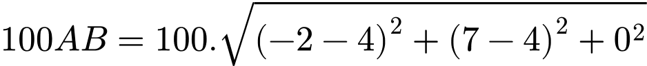 Vì đơn vị trên mỗi trục tính bằng một trăm mét, nên ta quy đổi