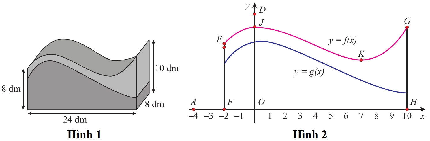 Câu 22 [1103685]: Một người thợ muốn chế tạo một chiếc ghế tình yêu như hình 1 với chiều dài 24 dm và rộng 8 dm. Bản vẽ mặt cắt của vật thể khi được thể hiện trên mặt phẳng