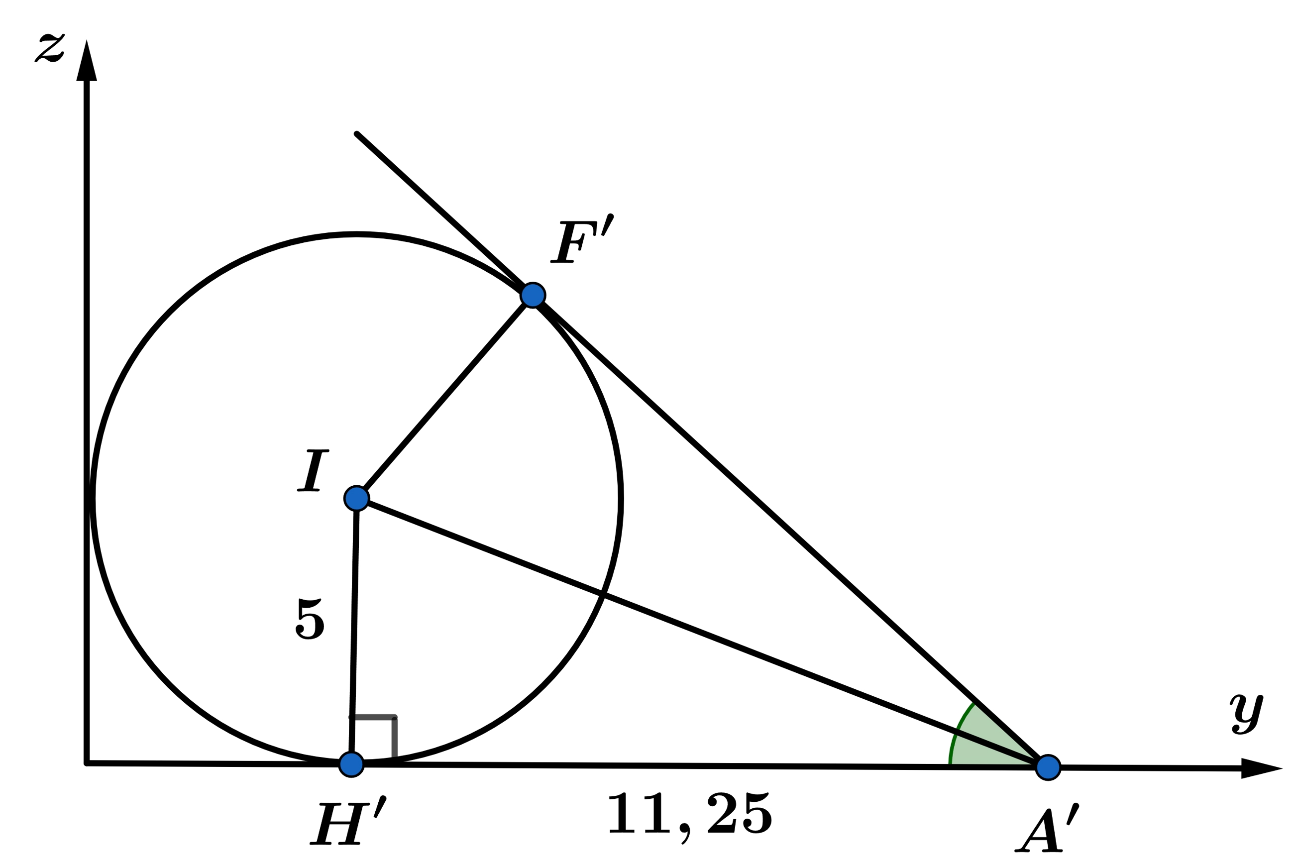 Hỏi nếu muốn cản phá được cú sút này thủ môn phải đứng cách vạch vôi một khoảng tối đa là bao nhiêu mét (làm tròn kết quả đến hàng phần trăm), coi rằng thủ môn này có thể chạm tay cao nhất là 2,7 mét ở mọi vị trí trong vòng cấm (vòng cấm là khu vực cách vạch vôi không quá 16m50)?