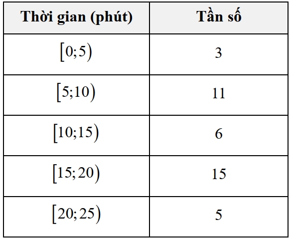Câu 11 [695291]: Thời gian trung bình sử dụng ChatGPT trên một ngày của một nhóm học sinh được ghi lại trong bảng dưới đây.