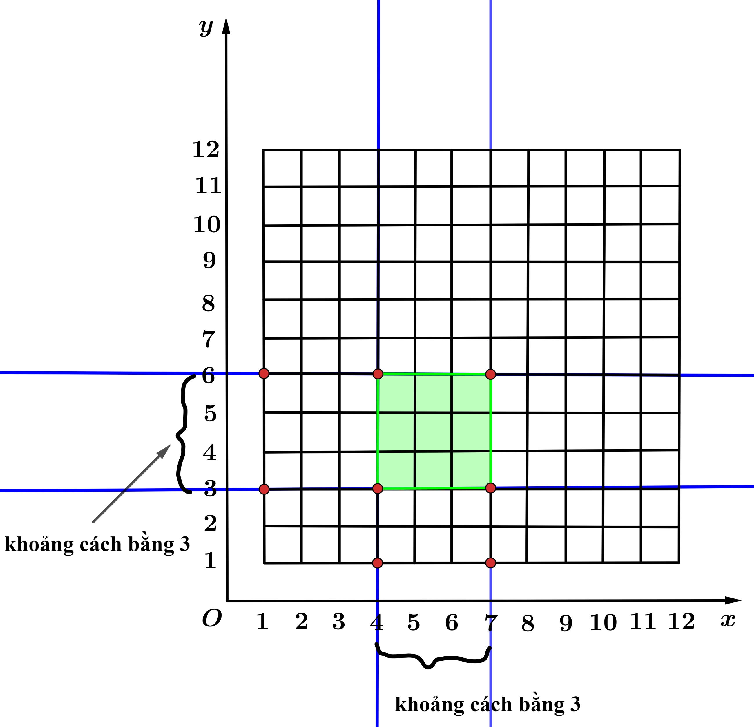 tạo thành hình vuôngNhận thấy khi chọn ra 2 điểm bất kì trên mỗi trục