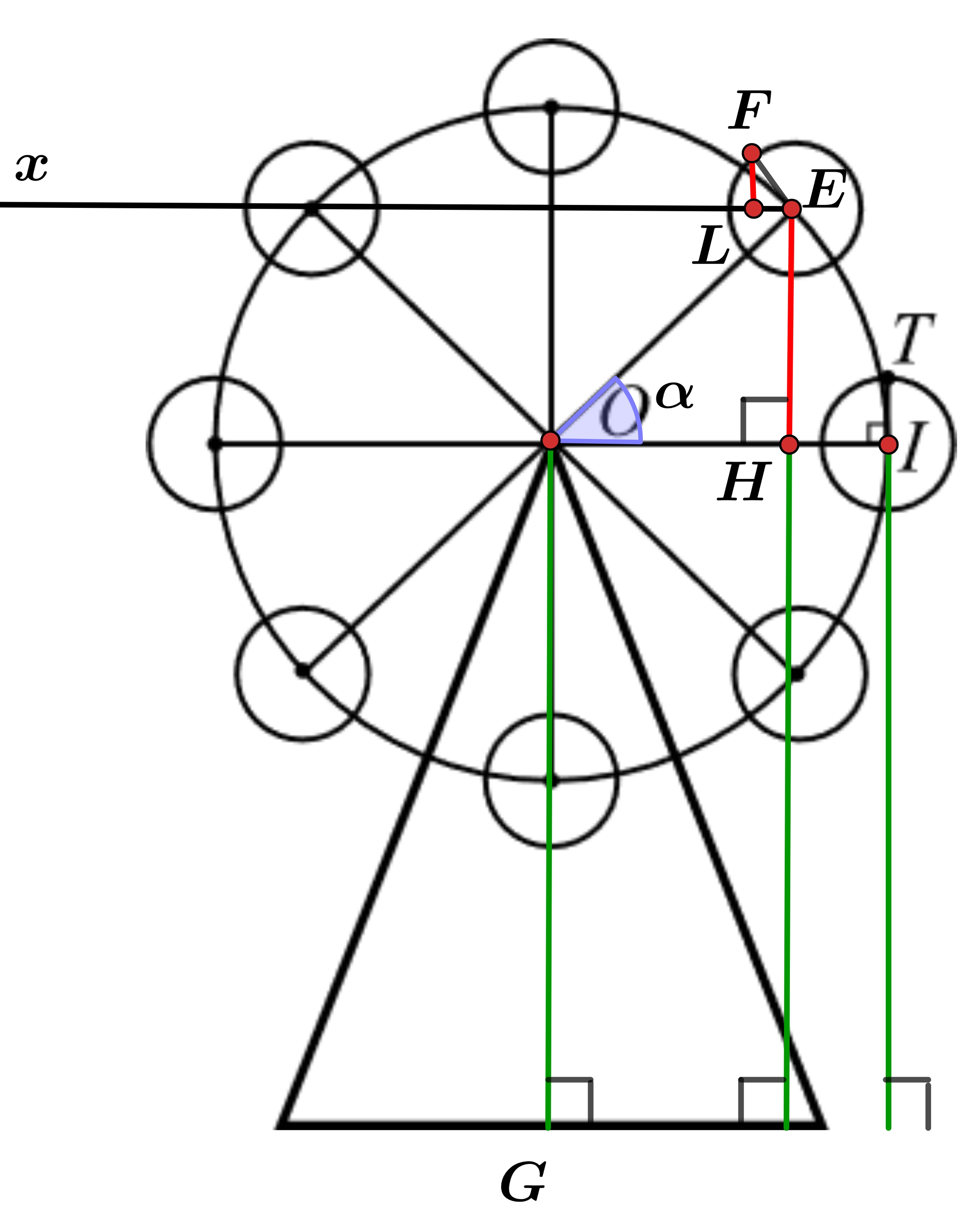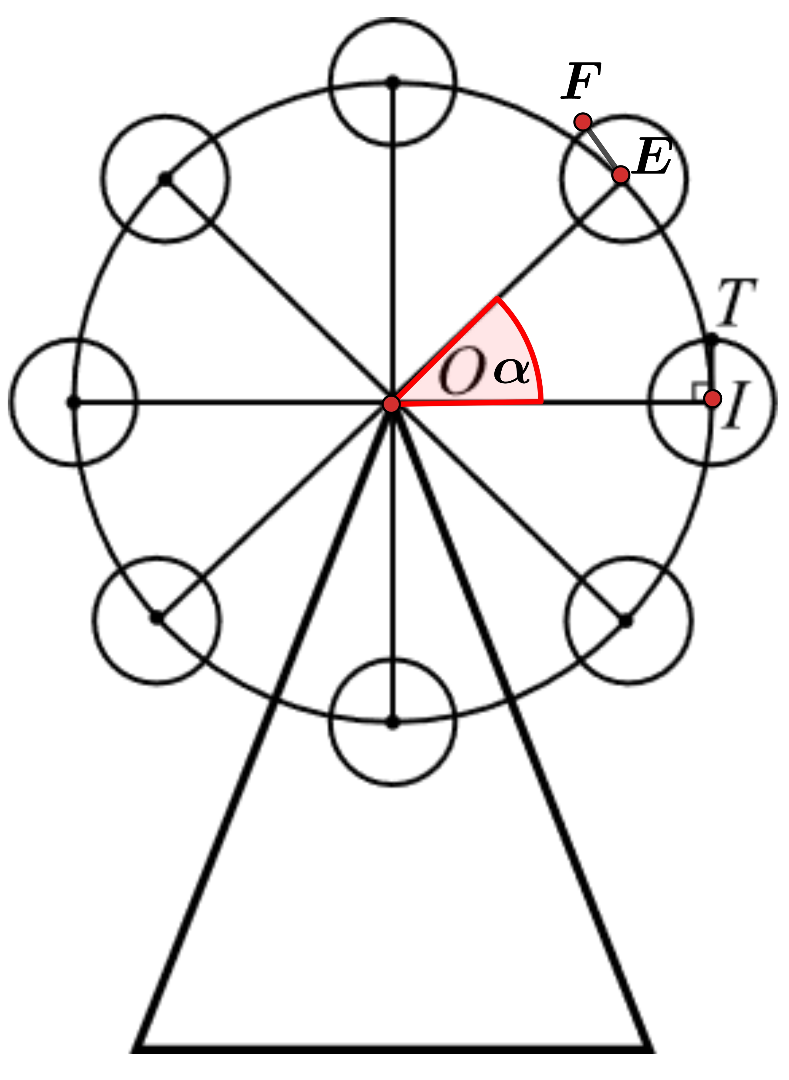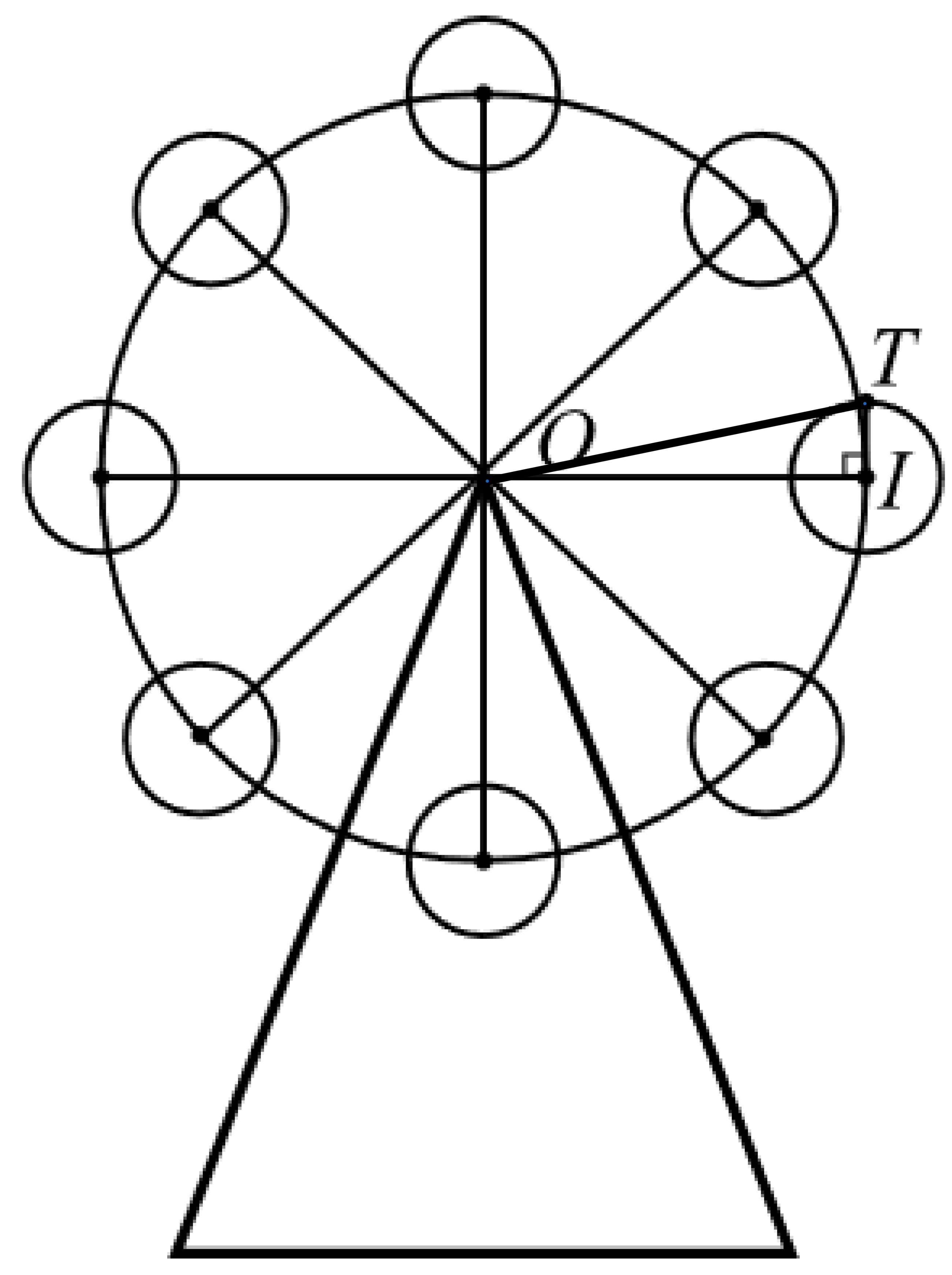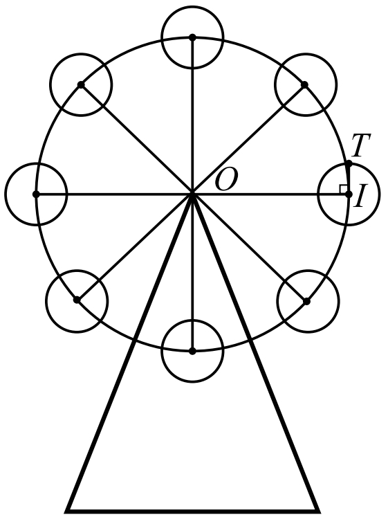Câu 22 [1103215]: Một trò chơi vòng đu quay được thể hiện như hình vẽ, trò chơi gồm một bánh xe lớn tâm