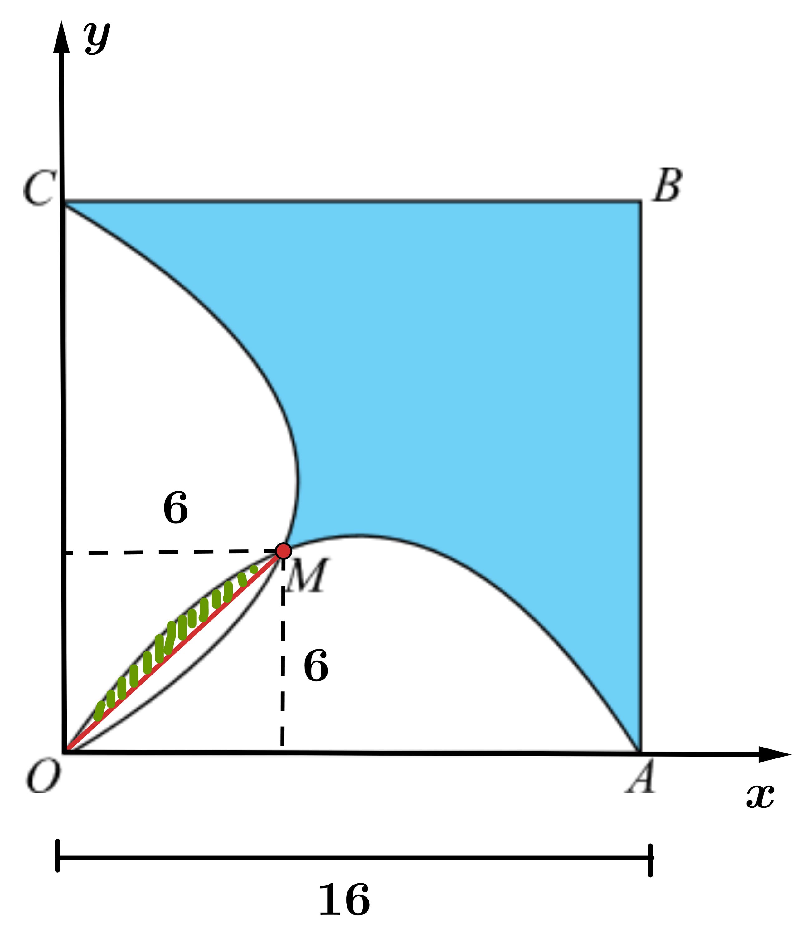 (phần tô màu xanh lá cây, và phần này bằng một nửa phần giao nhau của hai parabol