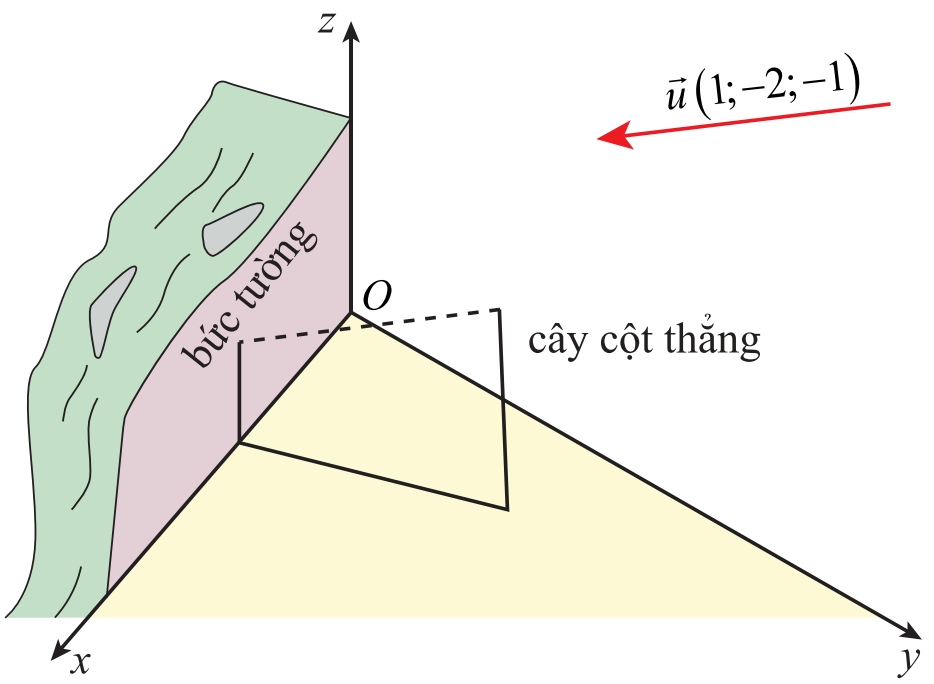 hướng lên, các tia sáng mặt trời chiếu song song từ trên xuống dưới theo vectơ