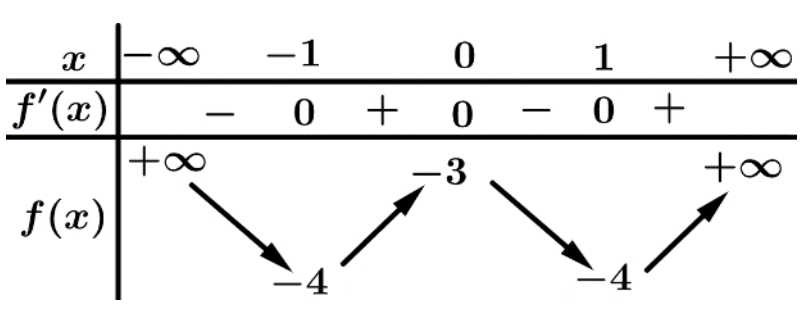 Nhìn vào bảng biến thiên ta thấy hàm số
