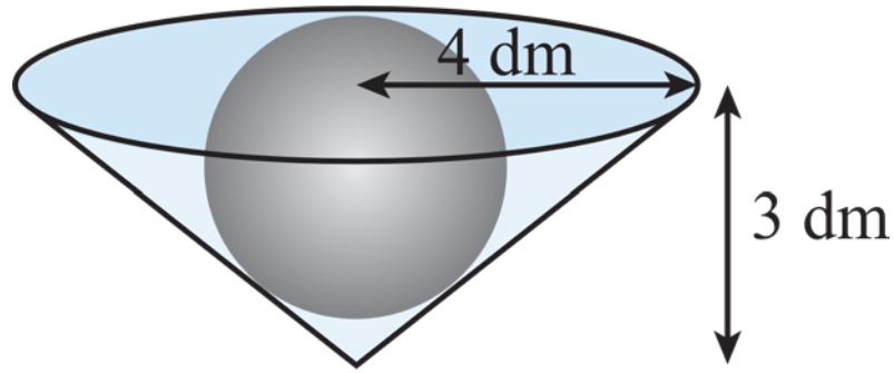 Ban đầu, cốc được đổ đầy nước. Người ta thả một quả cầu bằng sắt đặc làm bằng vật liệu không thấm nước vào cốc. Quả cầu được thả vào sao cho nó tiếp xúc với mặt bên trong của cốc nước (tham khảo hình vẽ) và thể tích nước tràn ra ngoài là lớn nhất (xem hình vẽ).